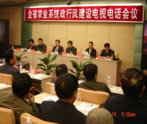 |   11月16日上午九时,全省农业系统政行风建设电视电话会议在长春召开。省政府副秘书长、省农委主任王守臣到会并发表重要讲话。省农委副主任杜志主持会议。